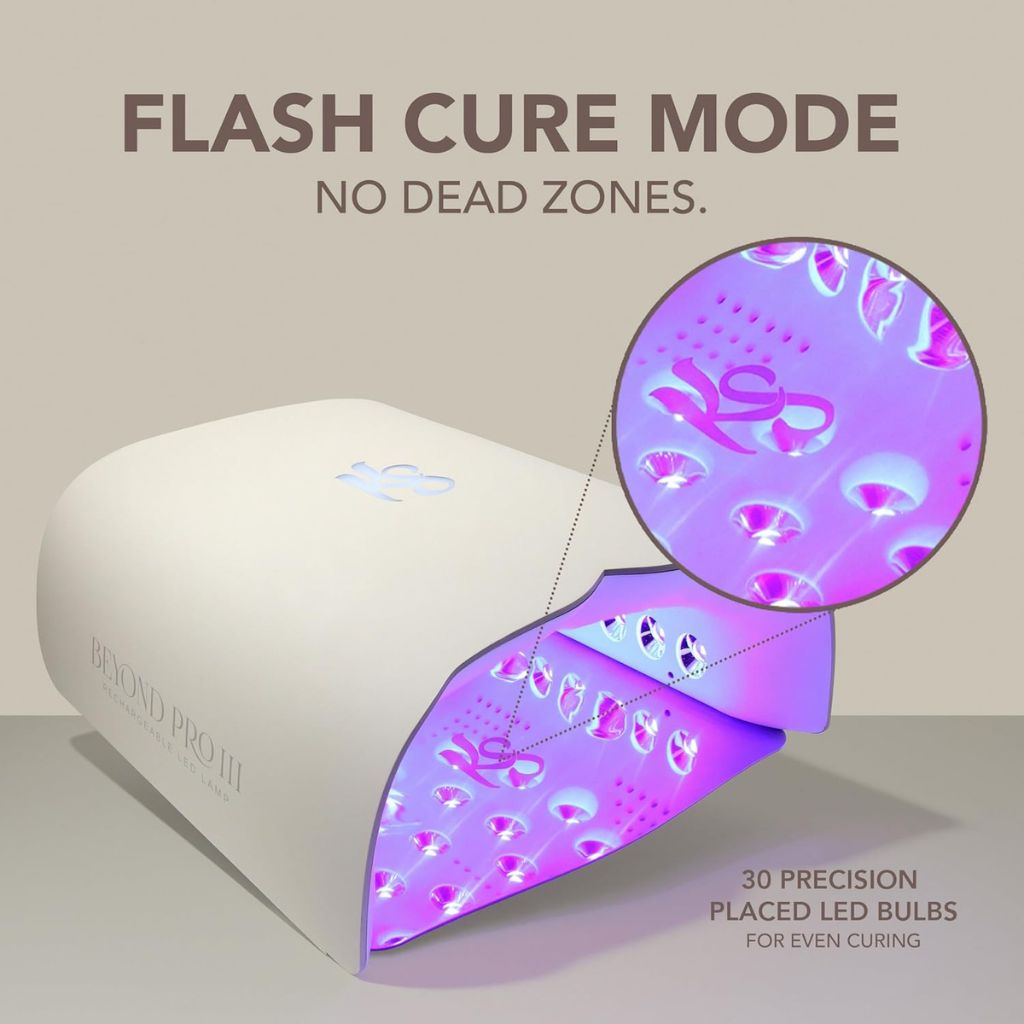 With 30 precision-placed LED bulbs, this lamp guarantees flawless, even curing with zero dead zones—even on the longest nails. The all-new intermittent Flash Cure Mode uses controlled light intervals to gently pre-cure gel in stages, allowing for a gradual, even cure that minimizes heat spikes and discomfort—ideal for builder gel, rubber base, and gel polish. 400 nm precision wavelength technology ensures consistent, effective curing for all gel formulas.
